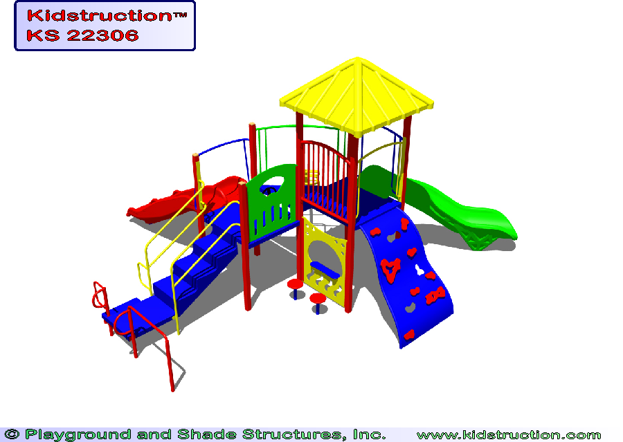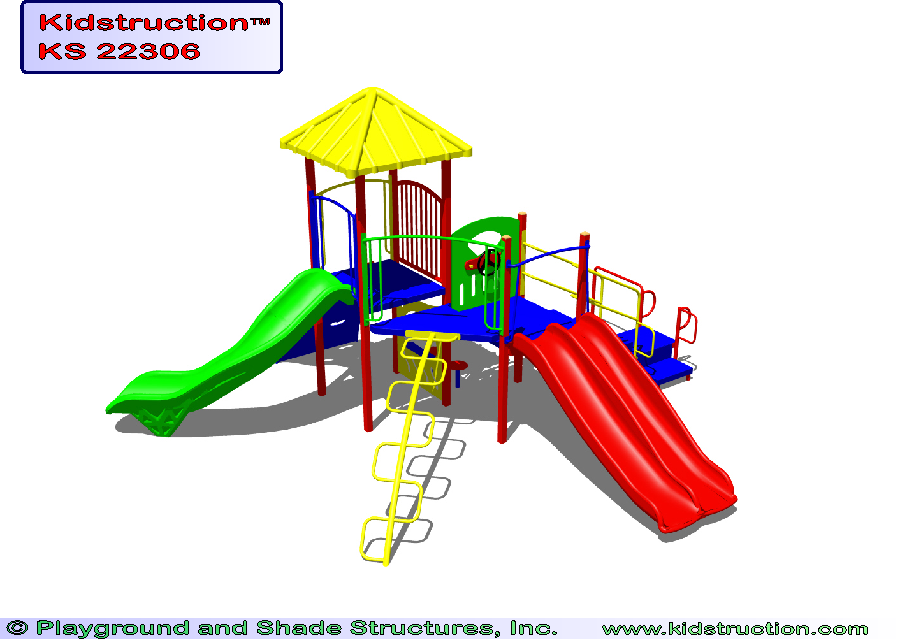This playground is available in metal or wood construction, and a variety of colors.