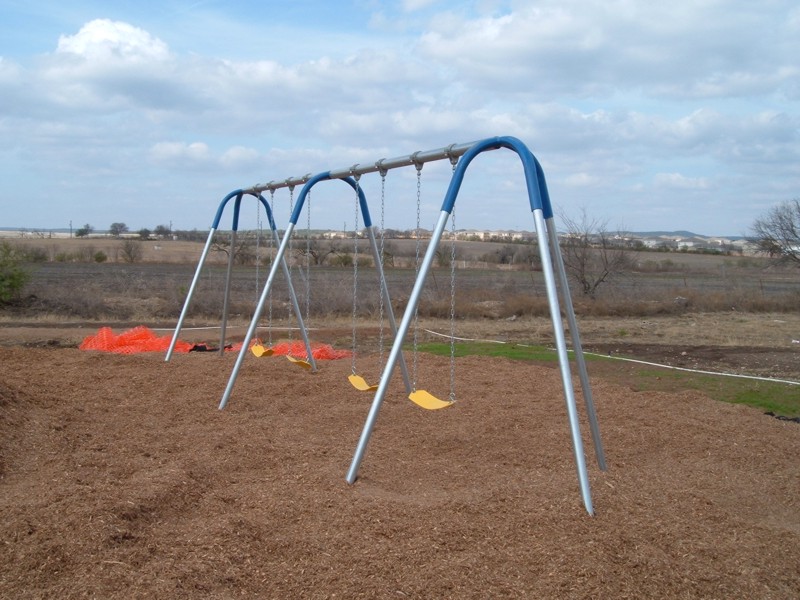 Traditional tripod style swing. 2.375" OD galvanized legs with 2.375" OD galvanized beam and 2.875" OD powder coated brackets. It comes complete with chains and 4 strap seats. Fully enclosed bucket seats and powder coated legs and beam are available for an additional change.