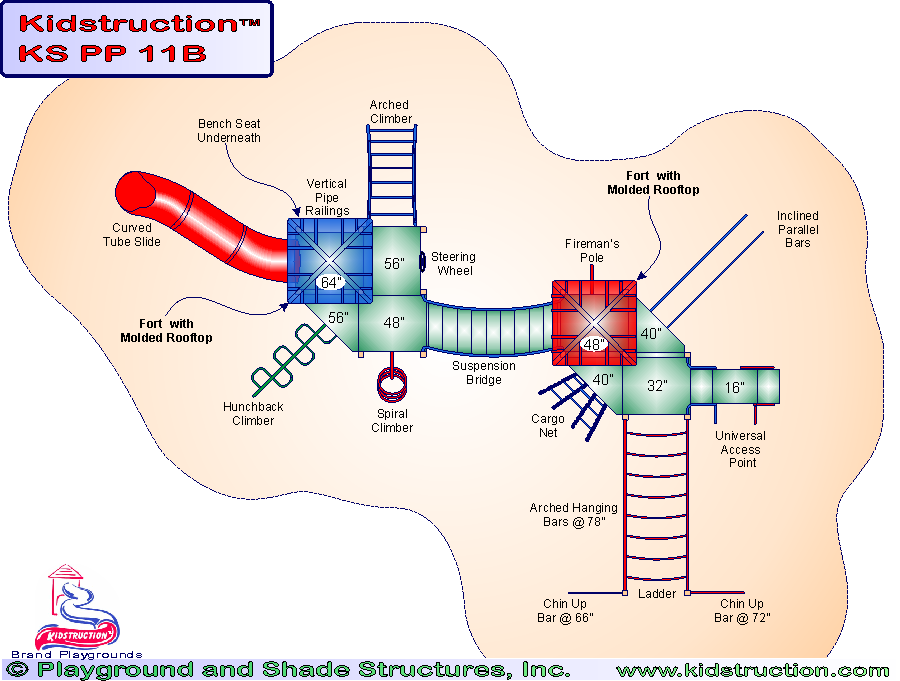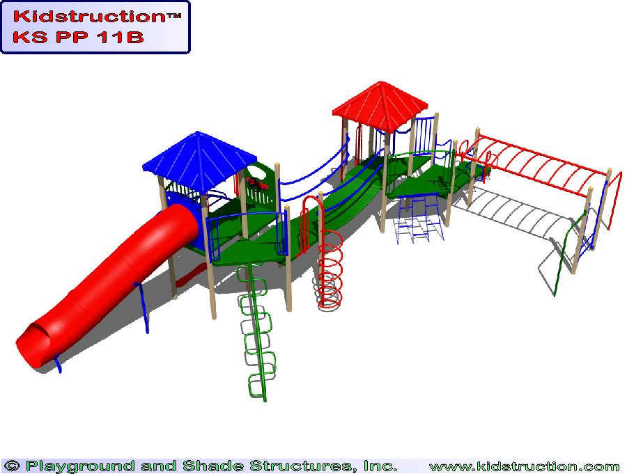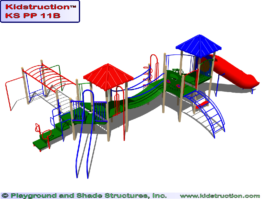 This playground is available in metal or wood construction, and a variety of colors.