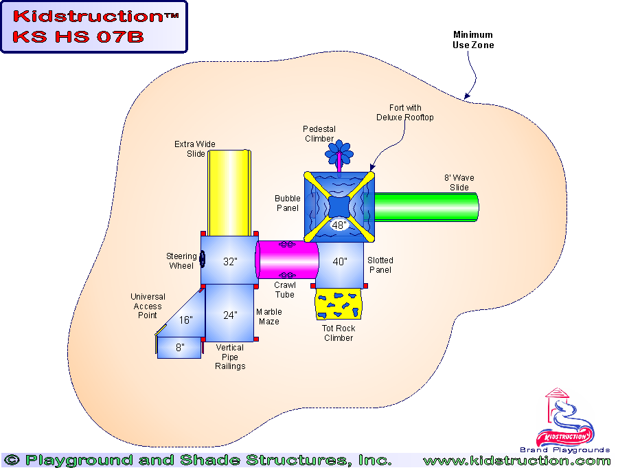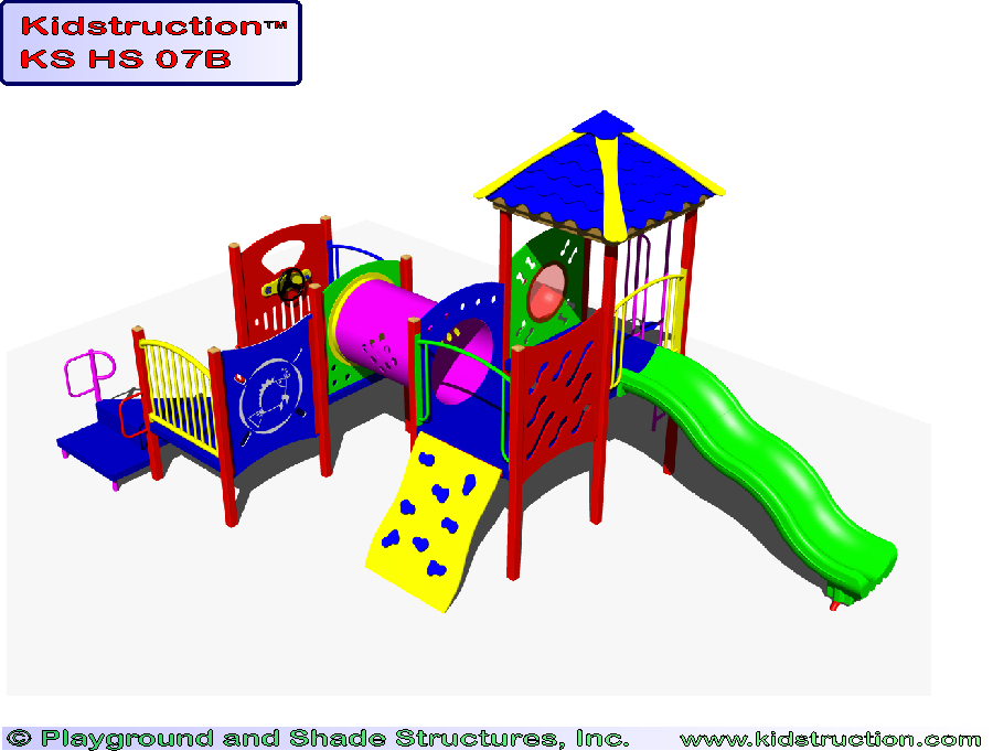 This playground is available in metal or wood construction, and a variety of colors.