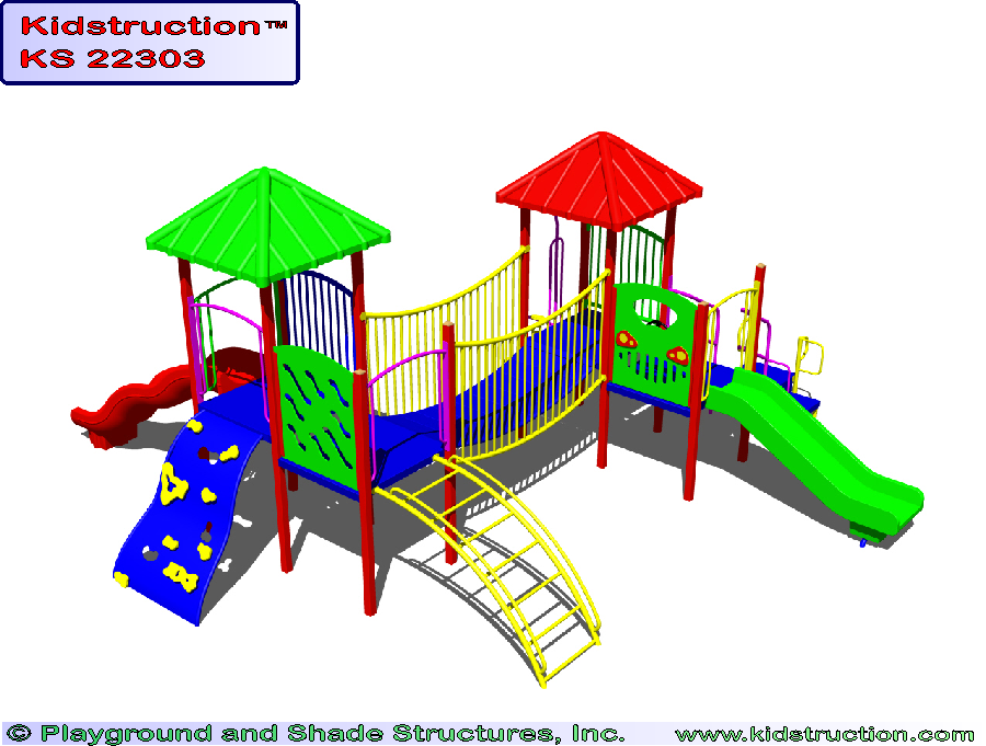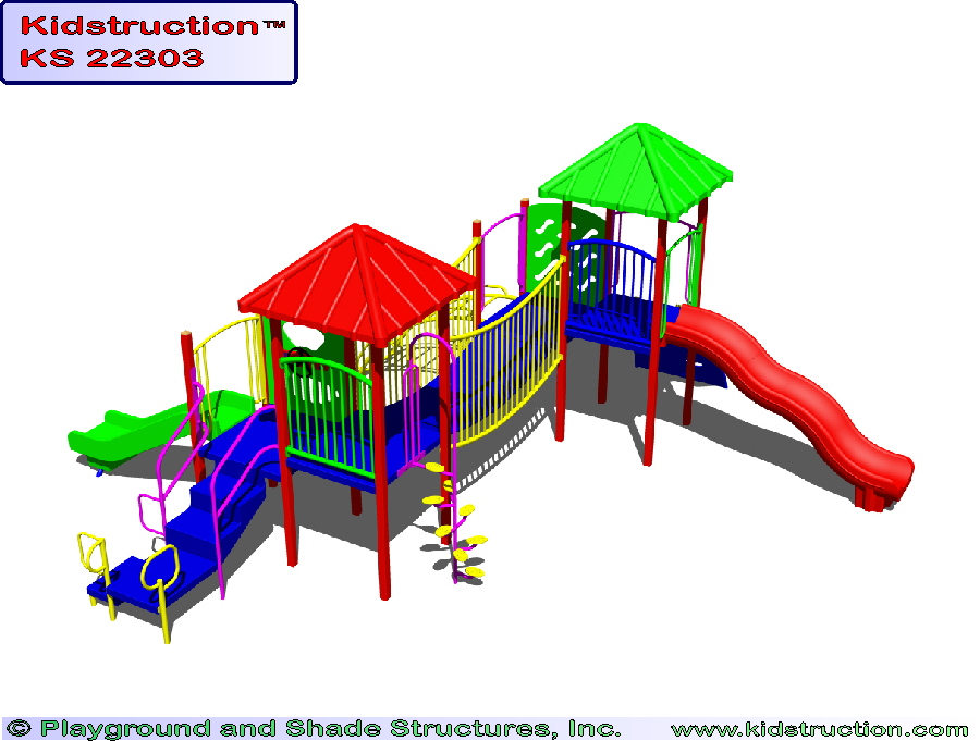 This playground is available in metal or wood construction, and a variety of colors.