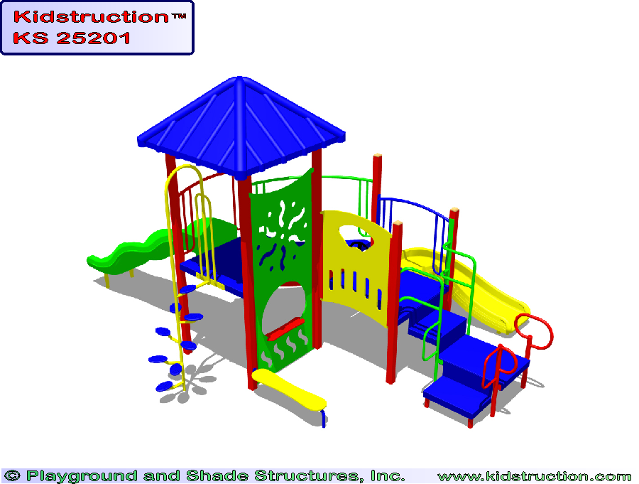 This playground is available in metal or wood construction, and a variety of colors.