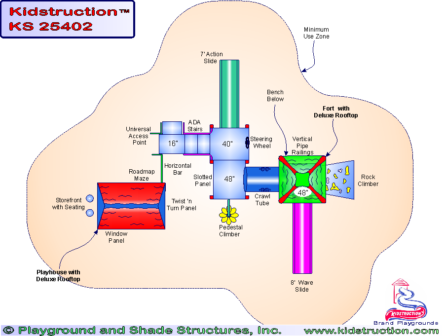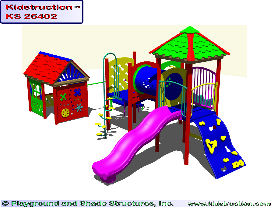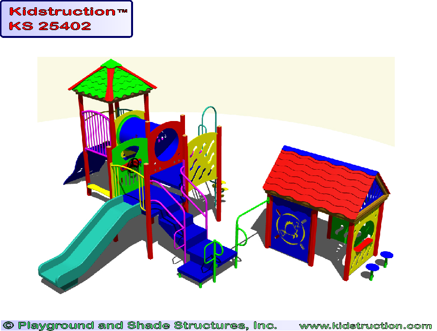 This playground is available in metal or wood construction, and a variety of colors.