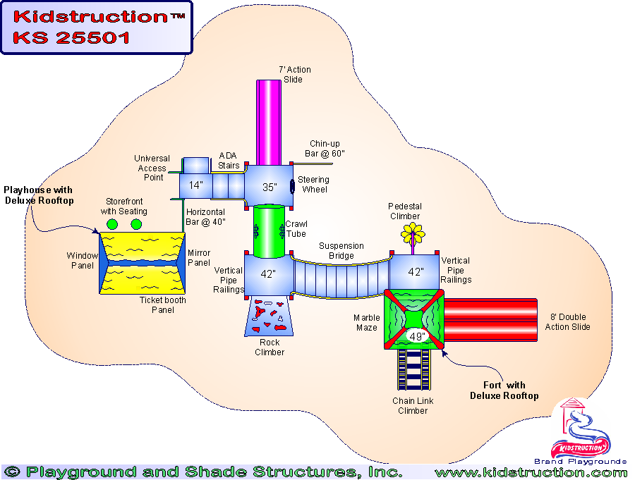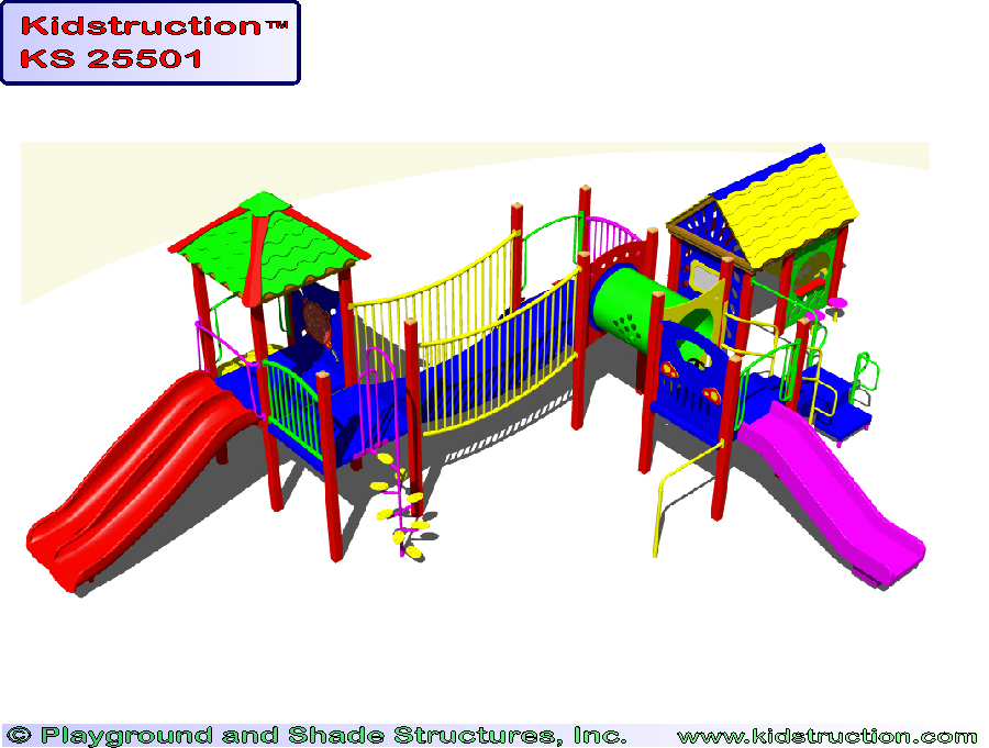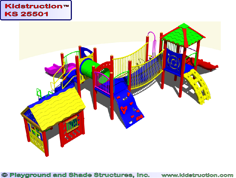This playground is available in metal or wood construction, and a variety of colors.