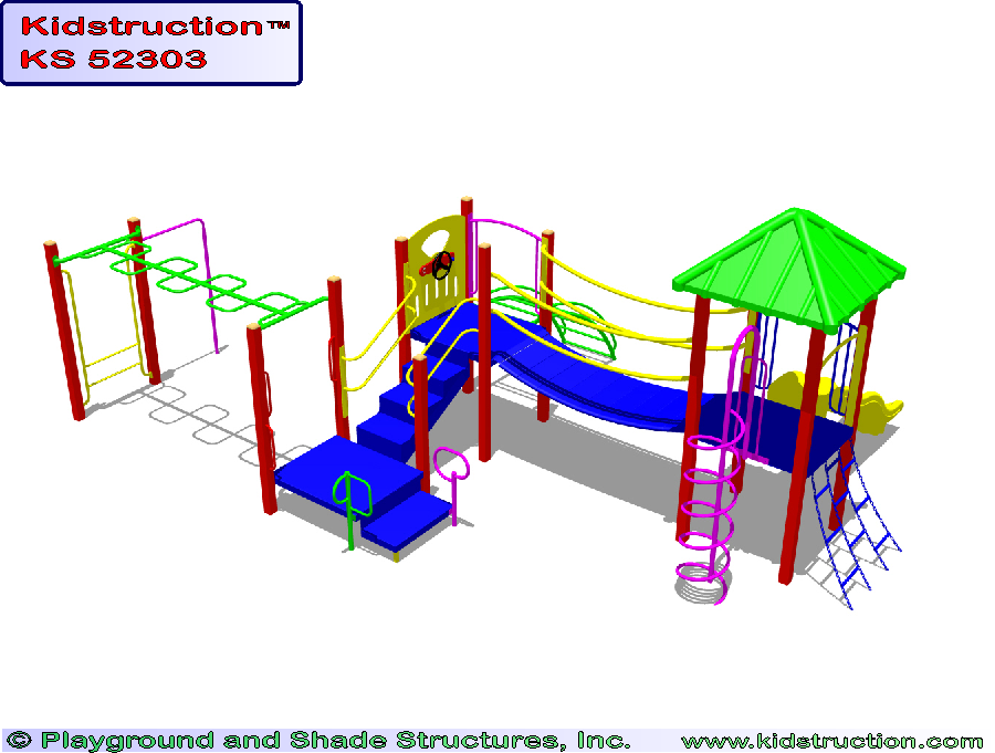 This playground is available in metal or wood construction, and a variety of colors.