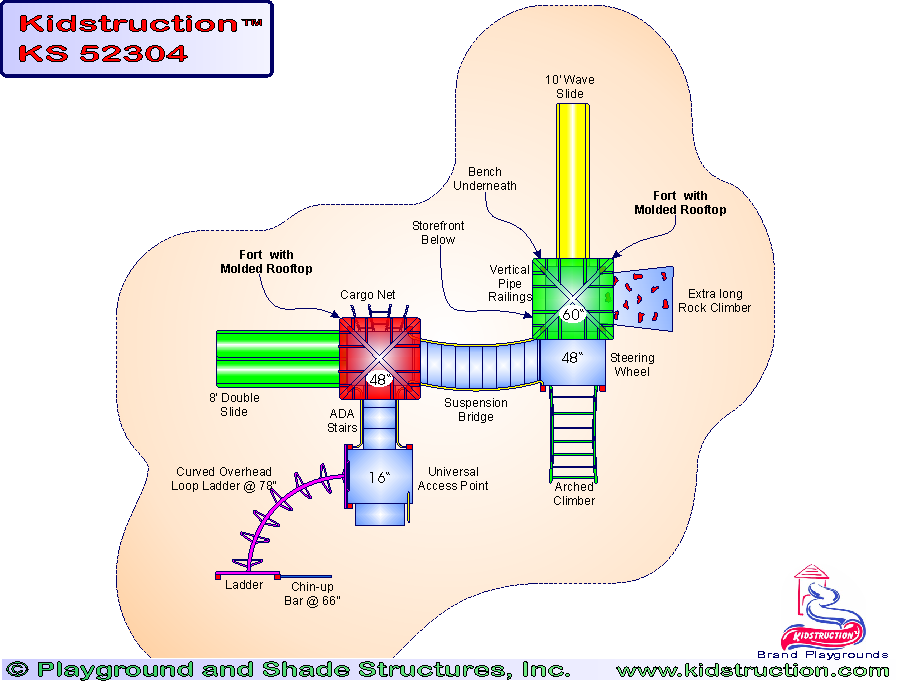 This playground requires 2 additional ground level play components for full ADA compliance.