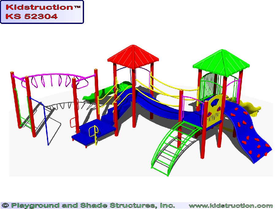 This playground is available in metal or wood construction, and a variety of colors.