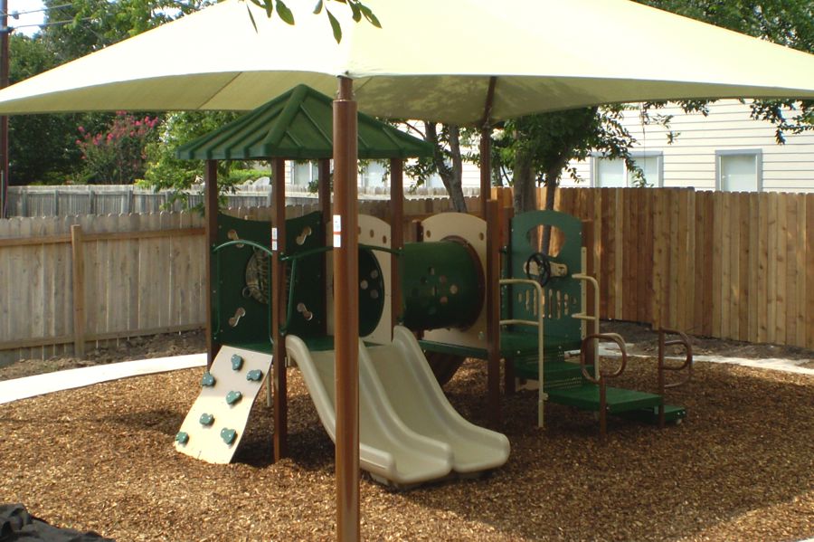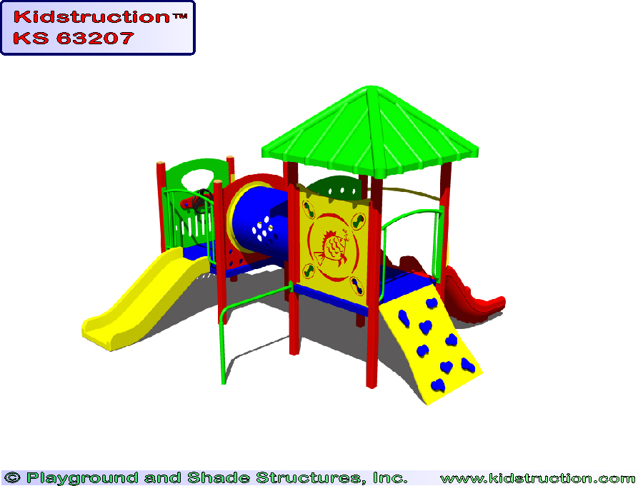 This playground is available in metal or wood construction, and a variety of colors.